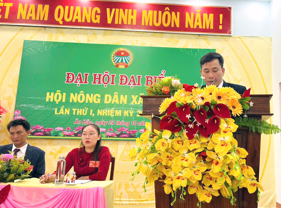 Phát biểu chỉ đạo Đại hội, đồng chí Nguyễn Bình An – Phó Bí thư Thường trực Đảng ủy xã ghi nhận, biểu dương những kết quả Hội Nông dân xã đạt được trong thời gian qua, đồng thời đề nghị Hội tiếp tục đổi mới nội dung, phương thức hoạt động, nâng cao vai trò đại diện, bảo vệ quyền lợi hợp pháp của hội viên; phát huy tinh thần “Hội phục vụ – hỗ trợ nông dân phát triển kinh tế, khởi nghiệp”, góp phần xây dựng xã Ân Hảo đạt chuẩn nông thôn mới nâng cao.