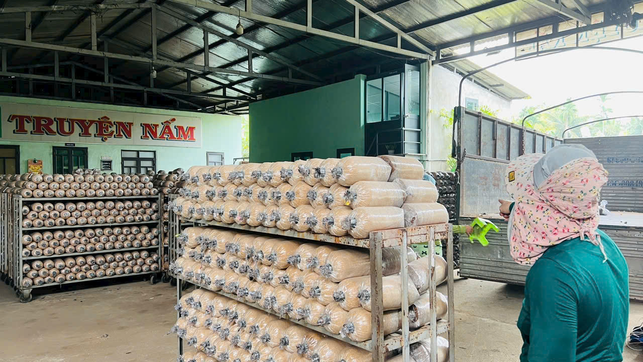 Cơ sở sản xuất phôi nấm của anh Nguyễn Xuân Truyện, thôn Hội Long, xã Ân Hảo