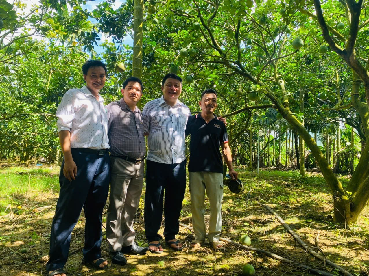 Tiếp đó, các đồng chí lãnh đạo đến thăm mô hình trồng Bưởi da xanh của hộ ông Nguyễn Thành Thông, thôn Vạn Trung, có diện tích đất canh tác 2,4 ha, với số lượng 250 cây, vườn trồng hợp lý, áp dụng kỹ thuật cắt tỉa, tạo tán và chăm bón đúng quy trình, vườn bưởi của ông Thông cho năng suất ổn định, chất lượng quả ngon, được thị trường ưa chuộng. Mô hình này đã và đang đem lại thu nhập khá, góp phần cải thiện đời sống gia đình, đồng thời tạo động lực để nhiều Hội viên nông dân học tập, nhân rộng.