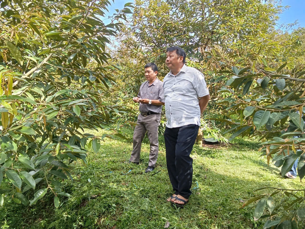 Đến thăm, kiểm tra mô hình trồng cây Sầu riêng của hộ ông Lê Thanh Hưng, thôn Phước Bình. Mô hình trồng cây Sầu riêng được canh tác trên diện tích đất 2,2 ha, với số lượng 215 cây, đây là mô hình được đầu tư chăm sóc bài bản, áp dụng tiến bộ kỹ thuật trong quá trình canh tác. Nhờ lựa chọn giống cây phù hợp, áp dụng quy trình chăm sóc khoa học, mô hình bước đầu mang lại hiệu quả kinh tế khá, hứa hẹn mở ra hướng đi mới cho phát triển cây ăn quả có giá trị cao tại địa phương.
