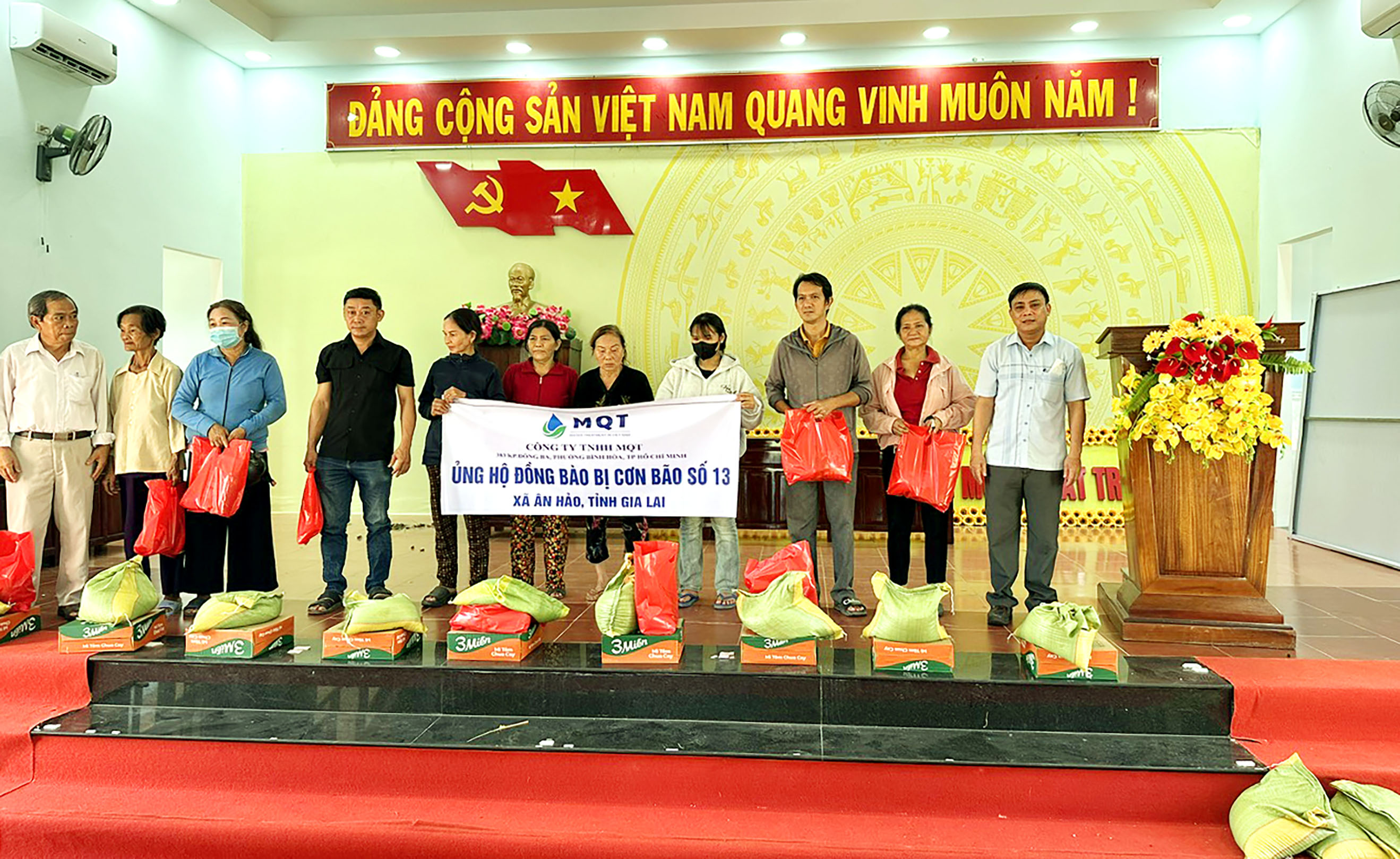 UBMTTQVN xã cùng Công ty TNHH MQT trao quà cho nhân dân bị ảnh hưởng cơn bão số 13