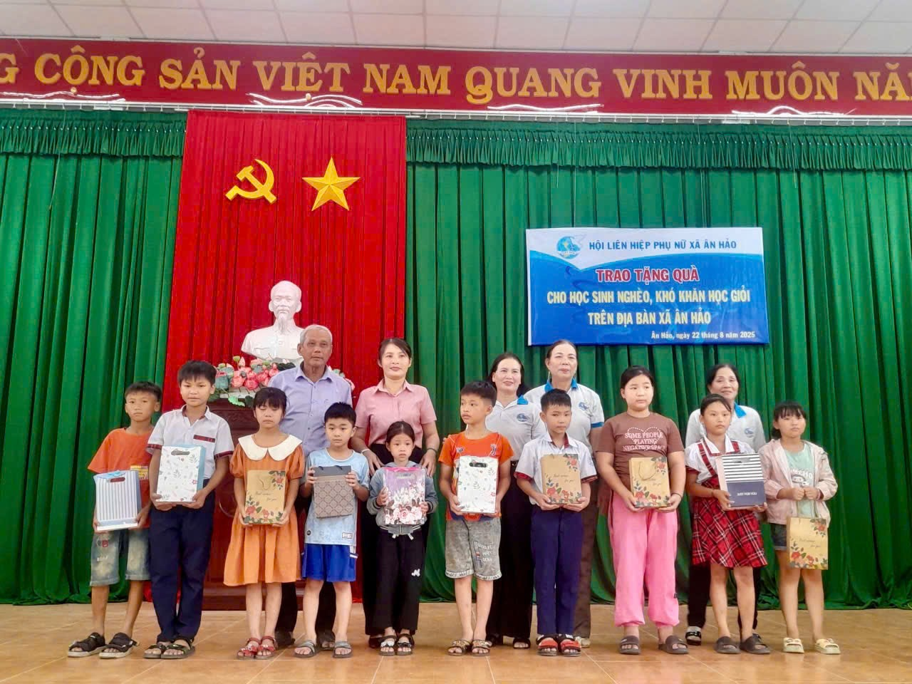 Món quà tặng cho các em mang ý nghĩa xã hội sâu sắc. động viên các em vươn lên trong học tập cũng như sẻ chia khó khăn với những gia đình phụ nữ có hoàn cảnh khó khăn trên địa bàn xã Ân Hảo.